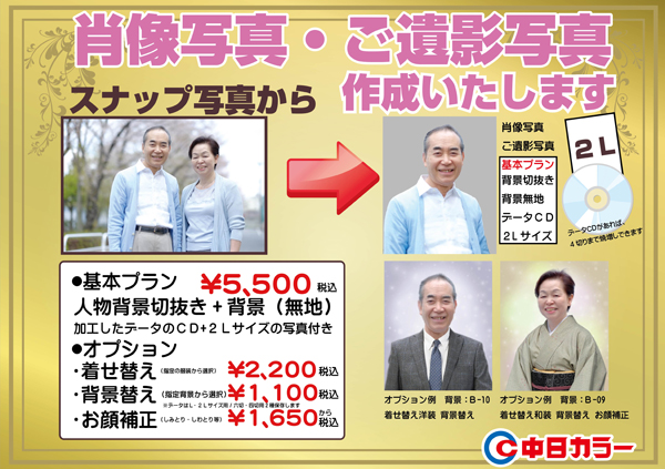 お持ちください。ご遺影写真作成は名古屋市天白区の中日カラーに