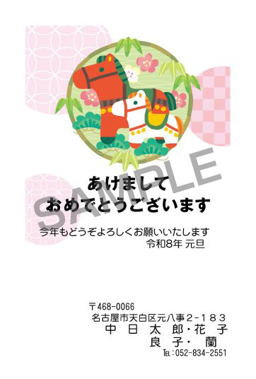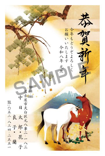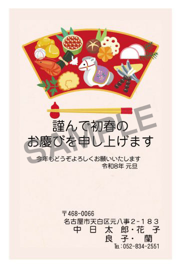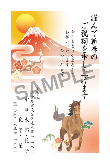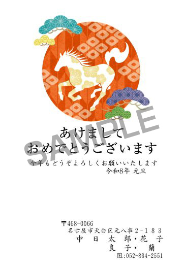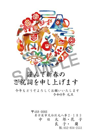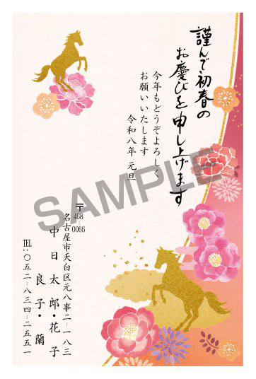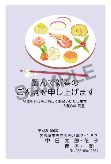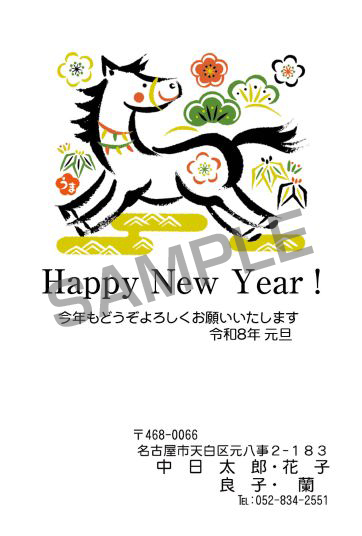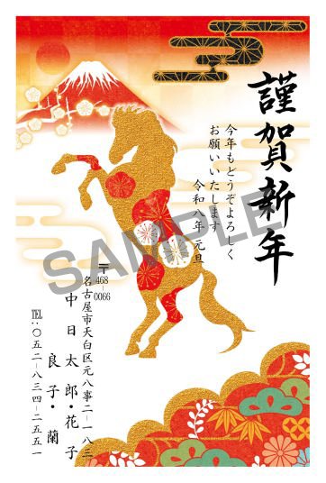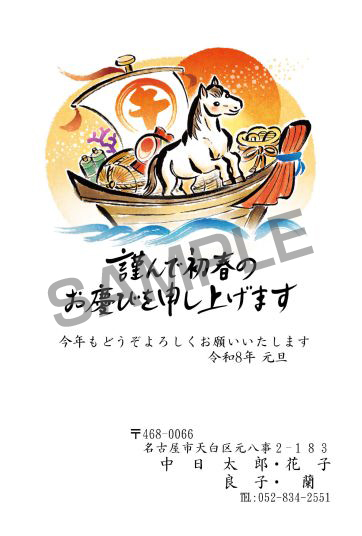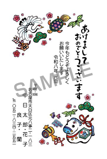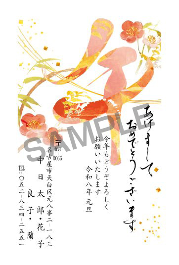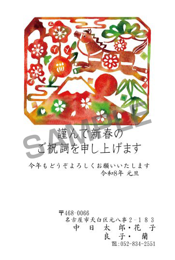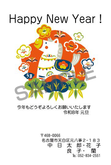 ・カラーの印刷です ・差出人・氏名・住所・お電話番号 e-mailなどが入ります。 ・あいさつ文が選べます。 ・はがき代別途かかります。 ・5枚以上からのご注文になります ・店頭受付の方は年賀ハガキ持込OK ・ハガキ直接印刷タイプ |