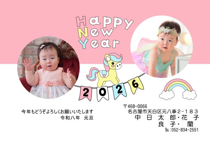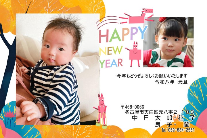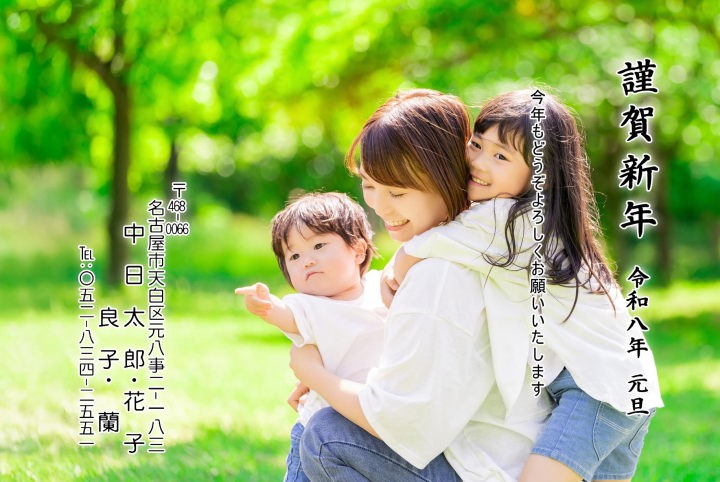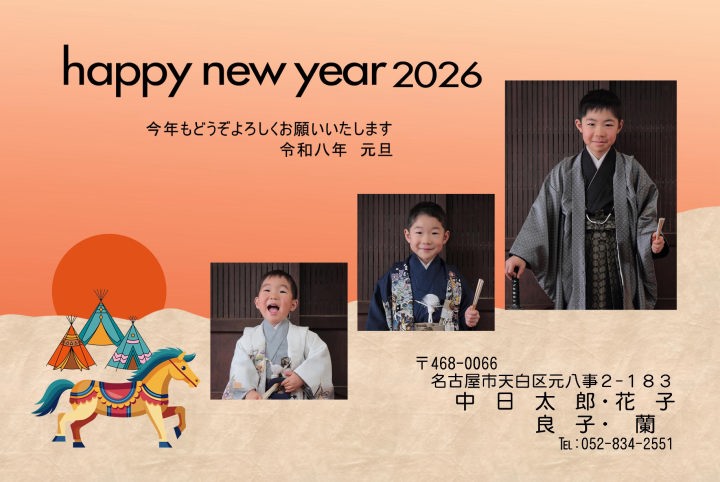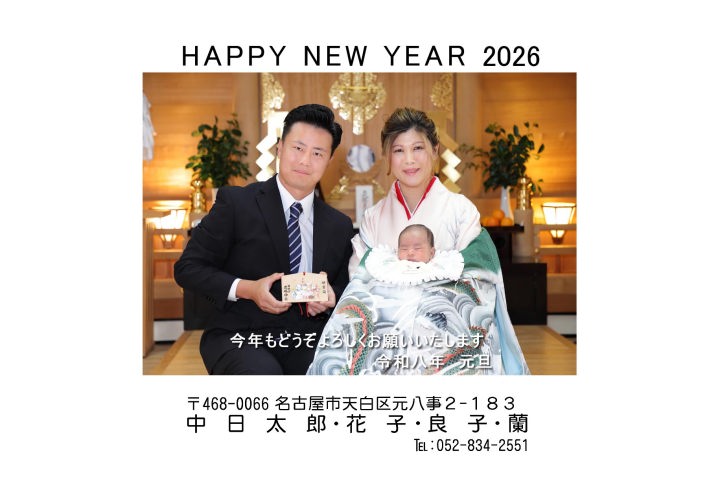 | ⑨ | 昨年新しい家族が誕生し にぎやかなお正月を迎えています 今年もよろしくお願いいたします 令和8年元旦 |