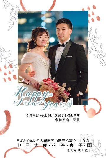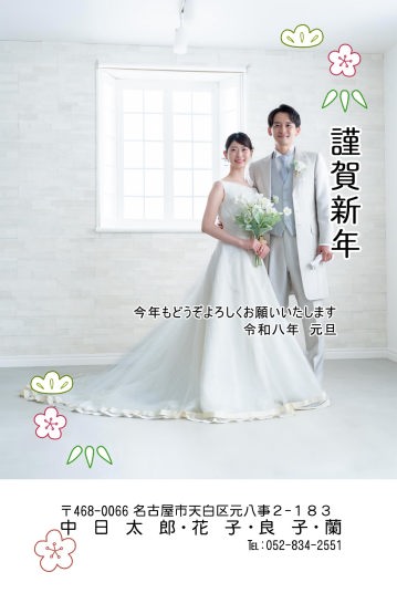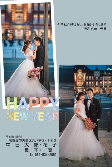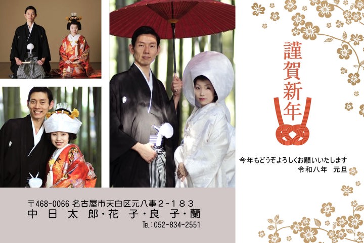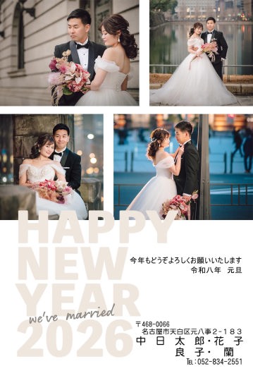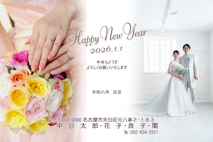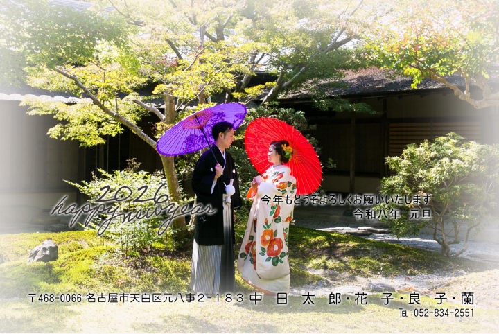 | ⑫ | 結婚して初めてのお正月を迎えています これからは二人で温かい家庭を築いていこうと思います どうぞよろしくお願いいたします 令和8年元旦 |