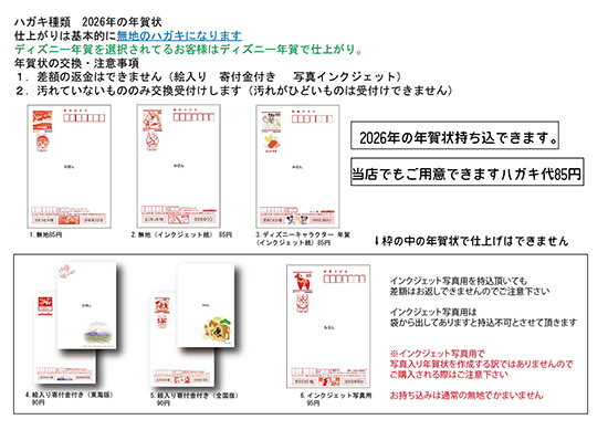 当店は年賀状持ち込み可能です