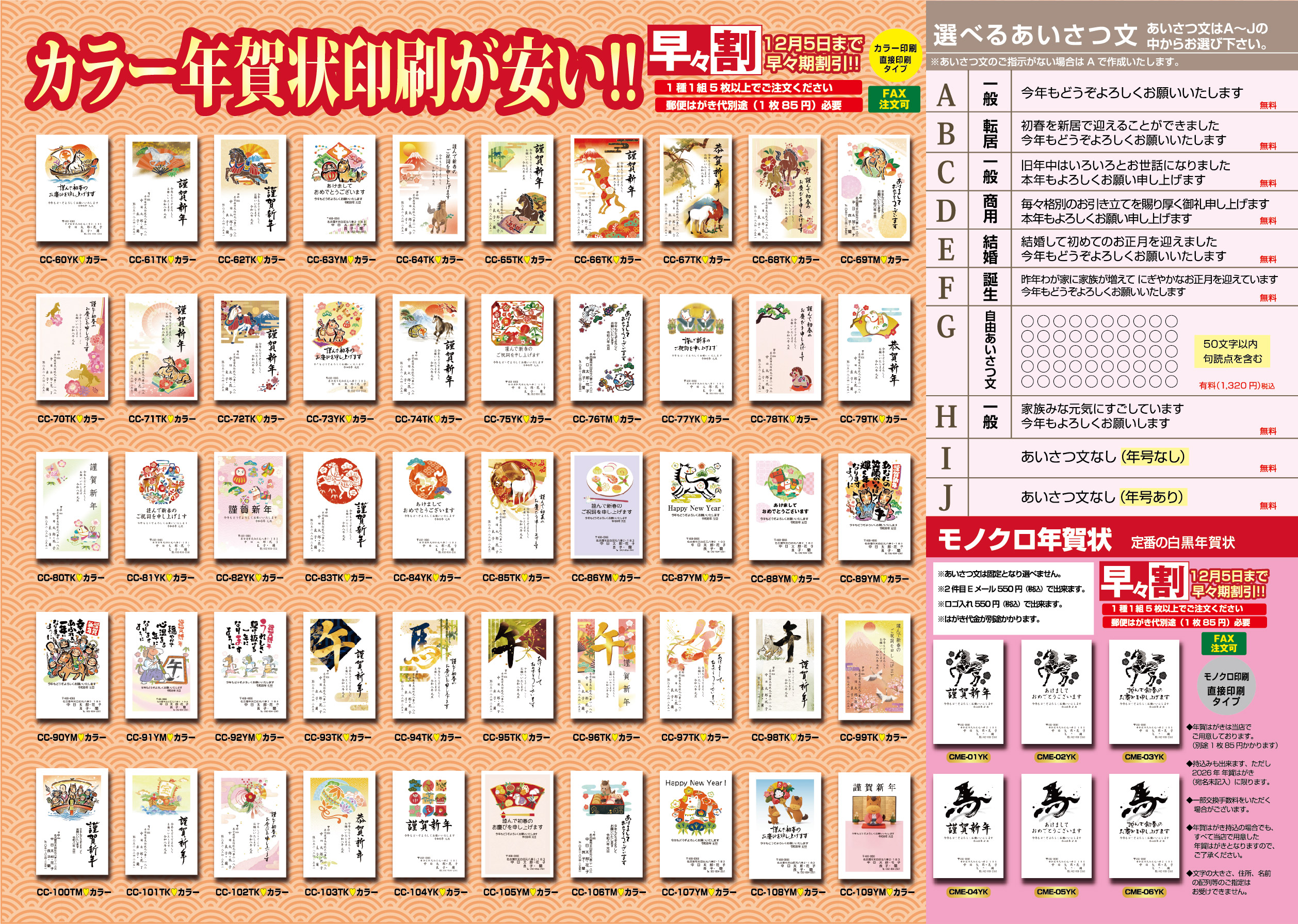 | 年賀状価格詳細一覧はこちら>>年賀状価格2026 | |||