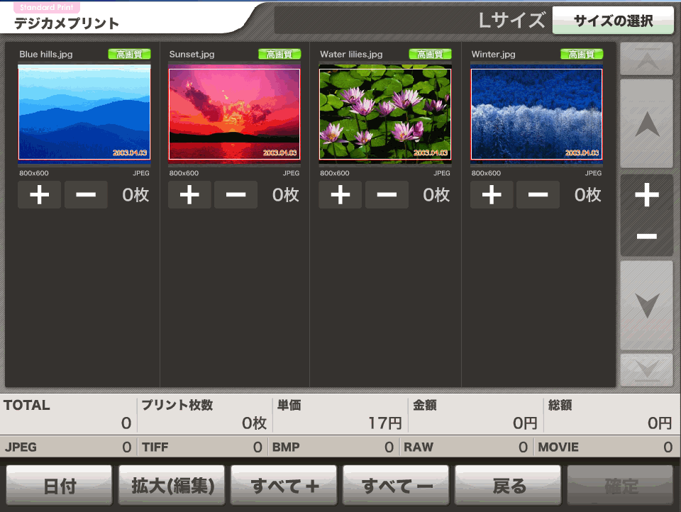 | ※注文ソフトを使用することなくインターネットの専用ページから注文する方法です。ウインドウズはもちろん、マッキントッシュからも注文可能。 | ※注文ソフトをダウンロード・インストール。サイズや枚数を先に入力してからインターネットで送信する方法です。ウインドウズのみ対応です。 | |